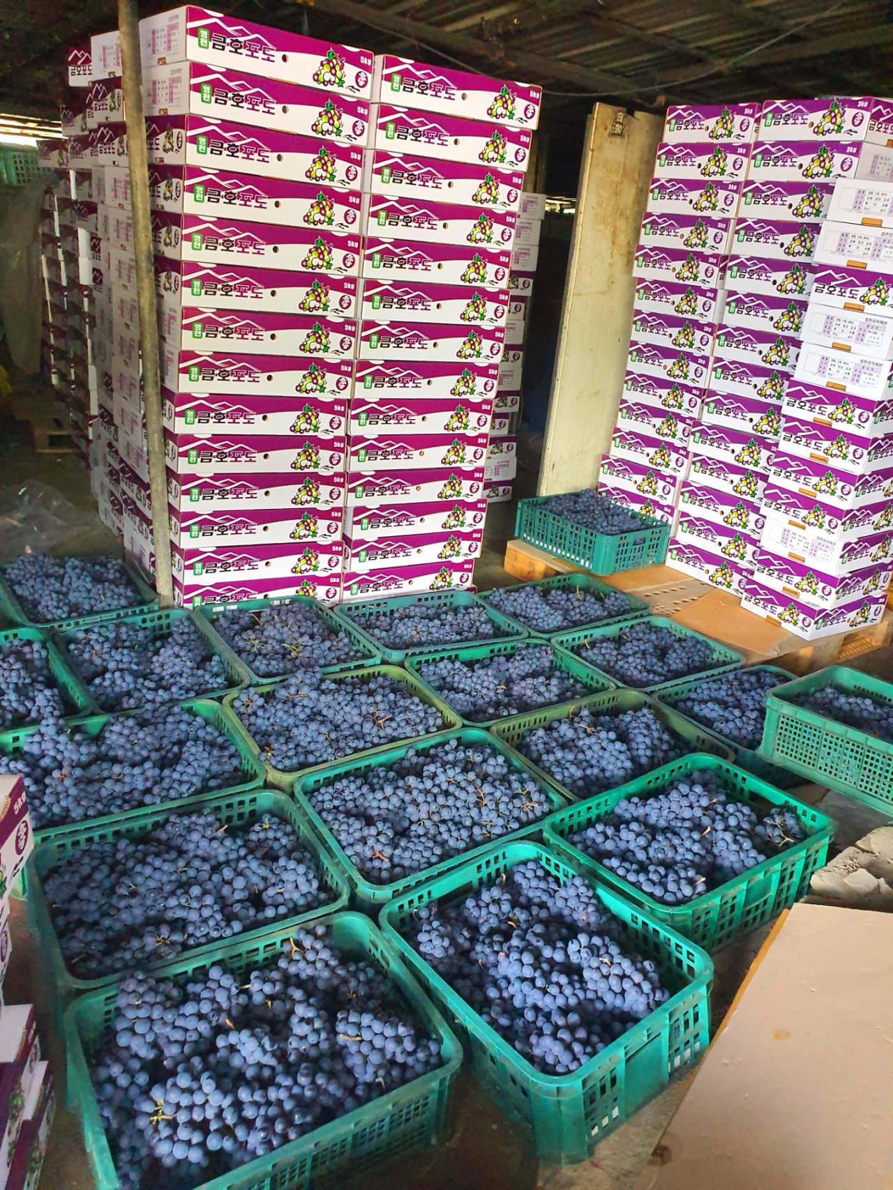 한 번씩 가서 머루포도 딸 때에는 정말 애기 다루듯 포장해서 오래간만에 가서 일 돕고 오면 손가락 관절이 아플 만큼 신경 쓰고 빨리 포장해야 포도가 무르지 않기 때문에 엄청난 노동을 하고 오게 됩니다.
